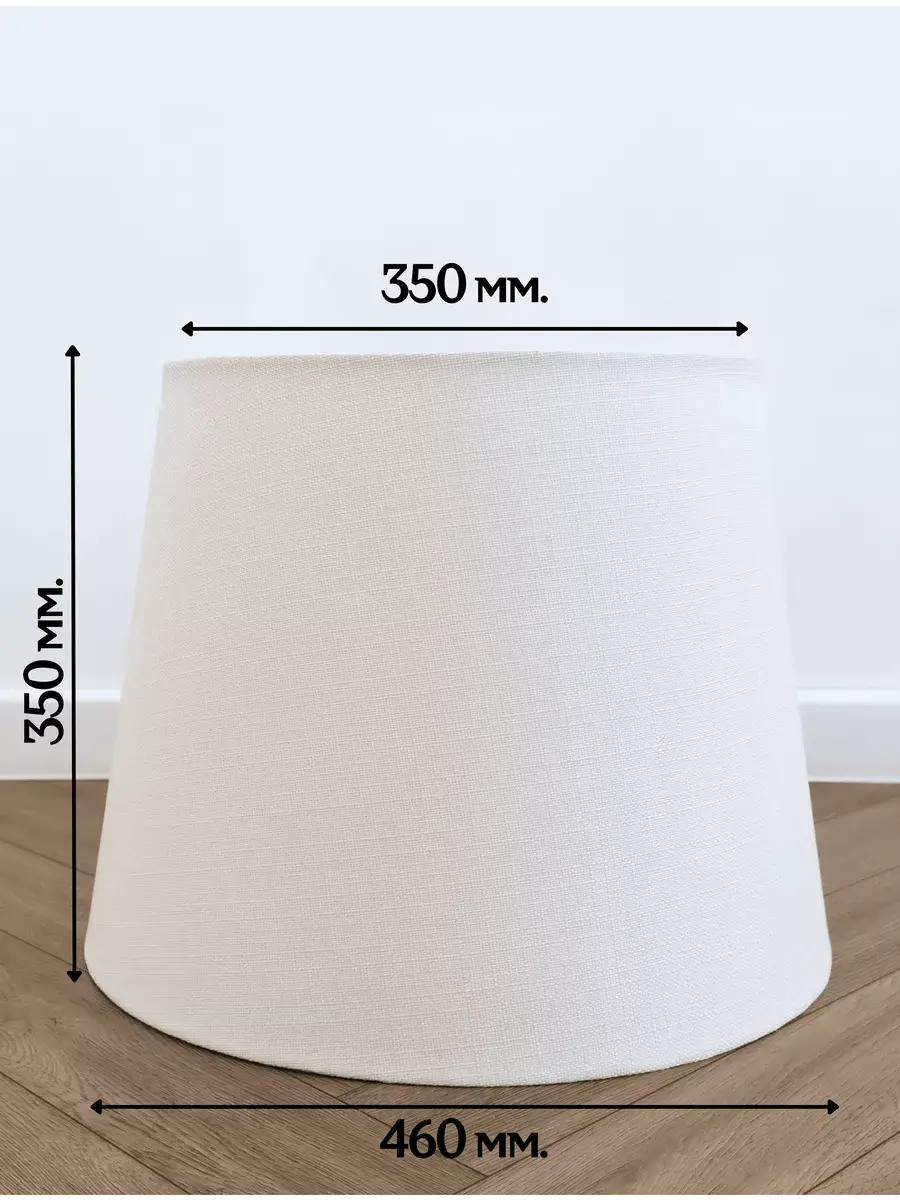 Декоративный абажур для торшера, выполненный в трендовом стиле лофт, от бренда Пермский Свет - это уютный элемент интерьера для вашего дома! Изделие ручной работы, выполненное из гипоаллергенной ткани и пластика, имеет классическую форму усеченного конуса. Диаметр нижней окружности составляет 460 мм, верхней - 350 мм, а высота - 350 мм. Тканевый материал, выбранный для основы, идеален для создания уютной атмосферы в вашей гостиной или спальне. Модель базового белого цвета подходит для большинства напольных и настольных торшеров с любым основанием с креплением патрона e27. Она станет настоящим украшением вашего светильника и прекрасно дополнит домашний интерьер, а большой диаметр обеспечивает идеальное освещение. Текстильное изделие с металлическим каркасом прекрасно подойдет для квартиры, загородного дома или дачи. Стильный абажур, имеющий лаконичный и минималистичный дизайн, впишется в любое интерьерное оформление комнаты: от классики до модерна, лофта, сканди или прованс. Все изделия бренда Пермский Свет производятся в России, на нашем собственном производстве и имеют строгий контроль на каждом этапе изготовления, благодаря чему обладают самым высоким качеством. Мы предпочитаем не экономить и закупаем только проверенное сырье. Все изделия создаются на нашей собственной фабрике полностью вручную. Мы используем только высококачественные ткани и материалы, чтобы произвести товары премиум-класса. Каждая деталь тщательно продумана нашими дизайнерами, поэтому не нареканий не будет даже у людей с очень требовательным вкусом. Мы уверены, что легкий и красивый абажур универсального белого цвета прекрасно дополнит декор любой вашей комнаты и станет ее украшением. Модель имеет прочный стальной каркас, покрытый надежной порошковой краской, и основание из пластика. Супер - трендовый предмет интерьера подойдет ко многим торшерам с цоколем лампочки е27. Он станет отличным решением и для дома, и для дачи и поможет вам обновить внешний вид вашей настольной лампы. Еще одним плюсом этого аксессуара является то, что он может быть универсальным подарком для любого праздника. Вы можете преподнести его маме, бабушке или жене на новоселье, 8 Марта, день рождения или любой другой праздничный повод. У нас есть акции и распродажи, вы можете купить наши товары в подарок или со скидкой!