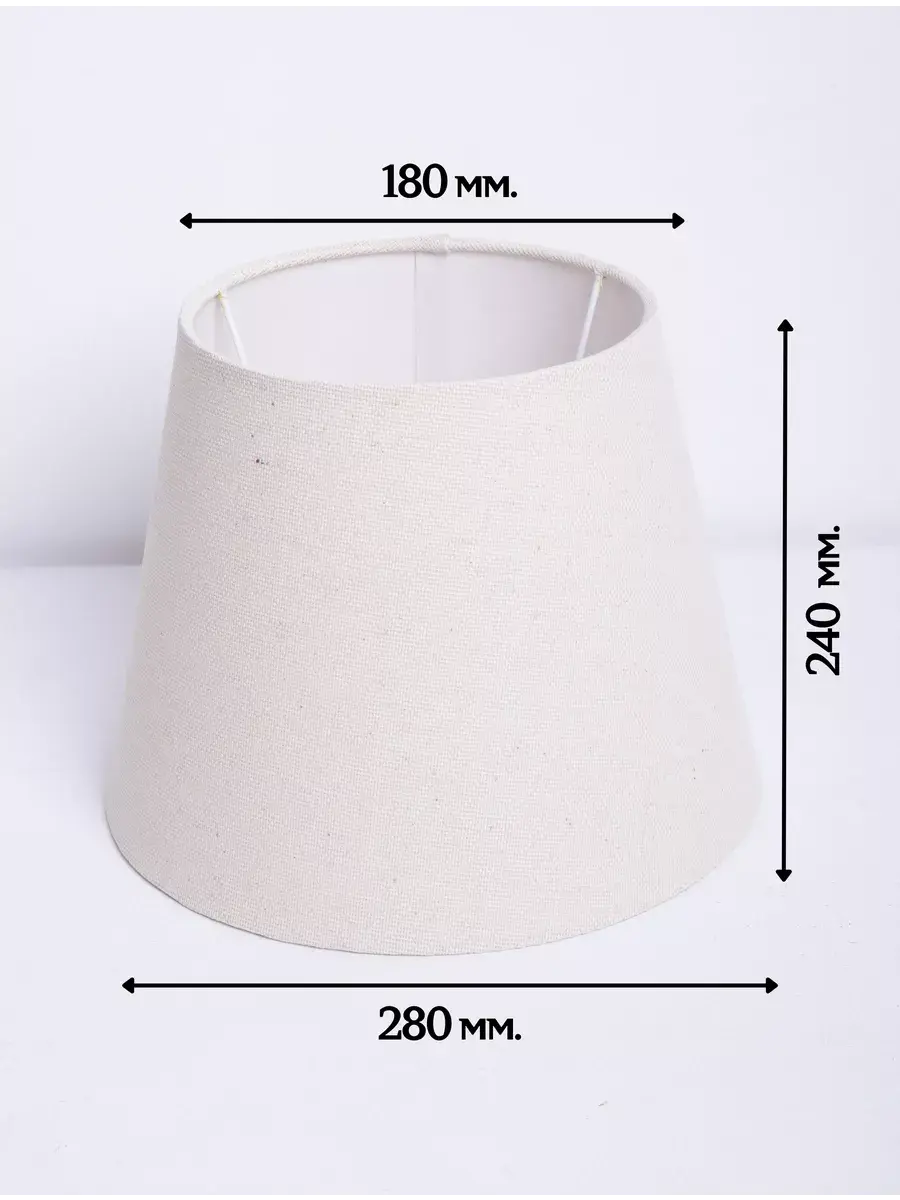 Декоративный абажур для торшера, выполненный в трендовом стиле лофт, от бренда Пермский Свет - это уютный элемент интерьера для вашего дома! Изделие ручной работы, выполненное из гипоаллергенной ткани и пластика, имеет классическую форму усеченного конуса. Тканевый материал, выбранный для основы, идеален для создания уютной атмосферы в вашей гостиной или спальне. Модель базового молочного цвета подходит для большинства напольных и настольных торшеров с любым основанием с креплением патрона e27. Она станет настоящим украшением вашего светильника и прекрасно дополнит домашний интерьер, а большой диаметр обеспечивает идеальное освещение. Текстильное изделие с металлическим каркасом прекрасно подойдет для квартиры, загородного дома или дачи. Стильный абажур, имеющий лаконичный и минималистичный дизайн, впишется в любое интерьерное оформление комнаты: от классики до модерна, лофта, сканди или прованс. Все изделия бренда Пермский Свет производятся в России, на нашем собственном производстве и имеют строгий контроль на каждом этапе изготовления, благодаря чему обладают самым высоким качеством. Мы предпочитаем не экономить и закупаем только проверенное сырье. Все изделия создаются на нашей собственной фабрике полностью вручную. Мы используем только высококачественные ткани и материалы, чтобы произвести товары премиум-класса. Каждая деталь тщательно продумана нашими дизайнерами, поэтому не нареканий не будет даже у людей с очень требовательным вкусом. Мы уверены, что легкий и красивый абажур универсального молочного цвета прекрасно дополнит декор любой вашей комнаты и станет ее украшением. Модель имеет прочный стальной каркас, покрытый надежной порошковой краской, и основание из пластика. Супер - трендовый предмет интерьера подойдет ко многим торшерам с цоколем лампочки е27. Он станет отличным решением и для дома, и для дачи и поможет вам обновить внешний вид вашей настольной лампы. Еще одним плюсом этого аксессуара является то, что он может быть универсальным подарком для любого праздника. Вы можете преподнести его маме, бабушке или жене на новоселье, 8 Марта, день рождения или любой другой праздничный повод. У нас есть акции и распродажи, вы можете купить наши товары в подарок или со скидкой!