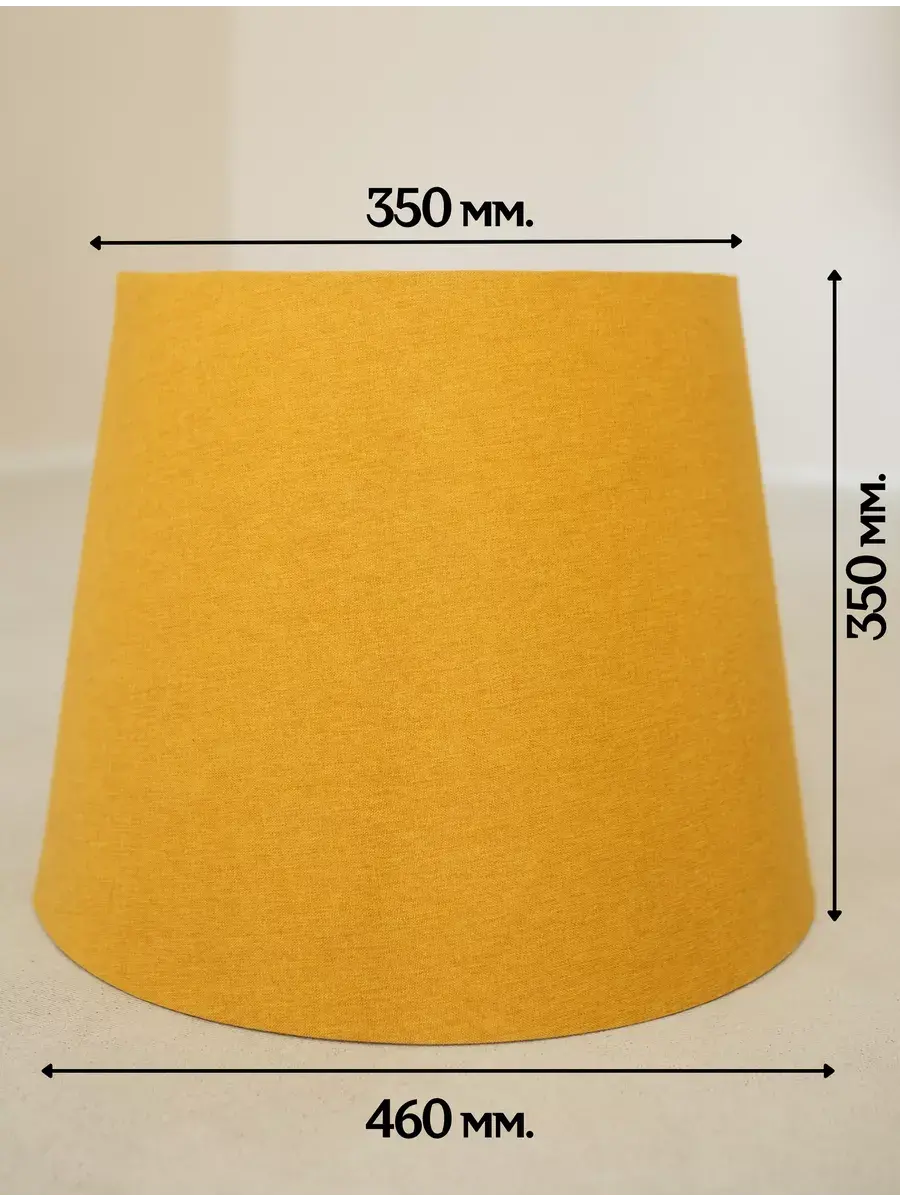 Декоративный абажур для торшера, выполненный в трендовом стиле лофт, от бренда Пермский Свет - это уютный элемент интерьера для вашего дома! Изделие ручной работы, выполненное из гипоаллергенной ткани и пластика, имеет классическую форму усеченного конуса. Диаметр нижней окружности составляет 460 мм, верхней - 350 мм, а высота - 350 мм. Тканевый материал, выбранный для основы, идеален для создания уютной атмосферы в вашей гостиной или спальне. Модель базового горчичного цвета подходит для большинства напольных и настольных торшеров с любым основанием с креплением патрона e27. Она станет настоящим украшением вашего светильника и прекрасно дополнит домашний интерьер, а большой диаметр обеспечивает идеальное освещение. Текстильное изделие с металлическим каркасом прекрасно подойдет для квартиры, загородного дома или дачи. Стильный абажур, имеющий лаконичный и минималистичный дизайн, впишется в любое интерьерное оформление комнаты: от классики до модерна, лофта, сканди или прованс. Все изделия бренда Пермский Свет производятся в России, на нашем собственном производстве и имеют строгий контроль на каждом этапе изготовления, благодаря чему обладают самым высоким качеством. Мы предпочитаем не экономить и закупаем только проверенное сырье. Все изделия создаются на нашей собственной фабрике полностью вручную. Мы используем только высококачественные ткани и материалы, чтобы произвести товары премиум-класса. Каждая деталь тщательно продумана нашими дизайнерами, поэтому не нареканий не будет даже у людей с очень требовательным вкусом. Мы уверены, что легкий и красивый абажур универсального горчичного цвета прекрасно дополнит декор любой вашей комнаты и станет ее украшением. Модель имеет прочный стальной каркас, покрытый надежной порошковой краской, и основание из пластика. Супер - трендовый предмет интерьера подойдет ко многим торшерам с цоколем лампочки е27. Он станет отличным решением и для дома, и для дачи и поможет вам обновить внешний вид вашей настольной лампы. Еще одним плюсом этого аксессуара является то, что он может быть универсальным подарком для любого праздника. Вы можете преподнести его маме, бабушке или жене на новоселье, 8 Марта, день рождения или любой другой праздничный повод. У нас есть акции и распродажи, вы можете купить наши товары в подарок или со скидкой!