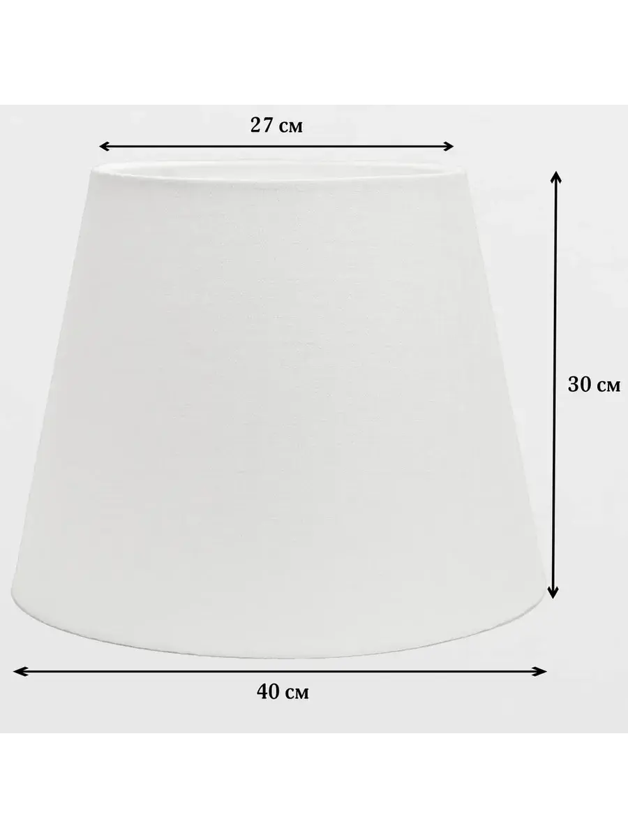 Декоративный абажур для торшера, выполненный в трендовом стиле лофт, от бренда Пермский Свет - это уютный элемент интерьера для вашего дома! Изделие ручной работы, выполненное из гипоаллергенной ткани и пластика, имеет классическую форму конуса. Диаметр нижней окружности составляет 400 мм, верхней - 270 мм, а высота - 300 мм. Тканевый материал, выбранный для основы, идеален для создания уютной атмосферы в вашей гостиной или спальне. Модель базового белого цвета подходит для большинства напольных и настольных торшеров с любым основанием с креплением патрона e27. Она станет настоящим украшением вашего светильника и прекрасно дополнит домашний интерьер, а большой диаметр обеспечивает идеальное освещение. Текстильное изделие с металлическим каркасом прекрасно подойдет для квартиры, загородного дома или дачи. Стильный абажур, имеющий лаконичный и минималистичный дизайн, впишется в любое интерьерное оформление комнаты: от классики до модерна, лофта, сканди или прованс. Все изделия бренда Пермский Свет производятся в России, на нашем собственном производстве и имеют строгий контроль на каждом этапе изготовления, благодаря чему обладают самым высоким качеством. Мы предпочитаем не экономить и закупаем только проверенное сырье. Все изделия создаются на нашей собственной фабрике полностью вручную. Мы используем только высококачественные ткани и материалы, чтобы произвести товары премиум-класса. Каждая деталь тщательно продумана нашими дизайнерами, поэтому не нареканий не будет даже у людей с очень требовательным вкусом. Мы уверены, что легкий и красивый абажур универсального белого цвета прекрасно дополнит декор любой вашей комнаты и станет ее украшением. Модель имеет прочный стальной каркас, покрытый надежной порошковой краской, и основание из пластика. Супер - трендовый предмет интерьера подойдет ко многим торшерам с цоколем лампочки е27. Он станет отличным решением и для дома, и для дачи и поможет вам обновить внешний вид вашей настольной лампы. Еще одним плюсом этого аксессуара является то, что он может быть универсальным подарком для любого праздника. Вы можете преподнести его маме, бабушке или жене на новоселье, день рождения или любой другой праздничный повод. У нас есть акции и распродажи, вы можете купить наши товары в подарок или со скидкой!