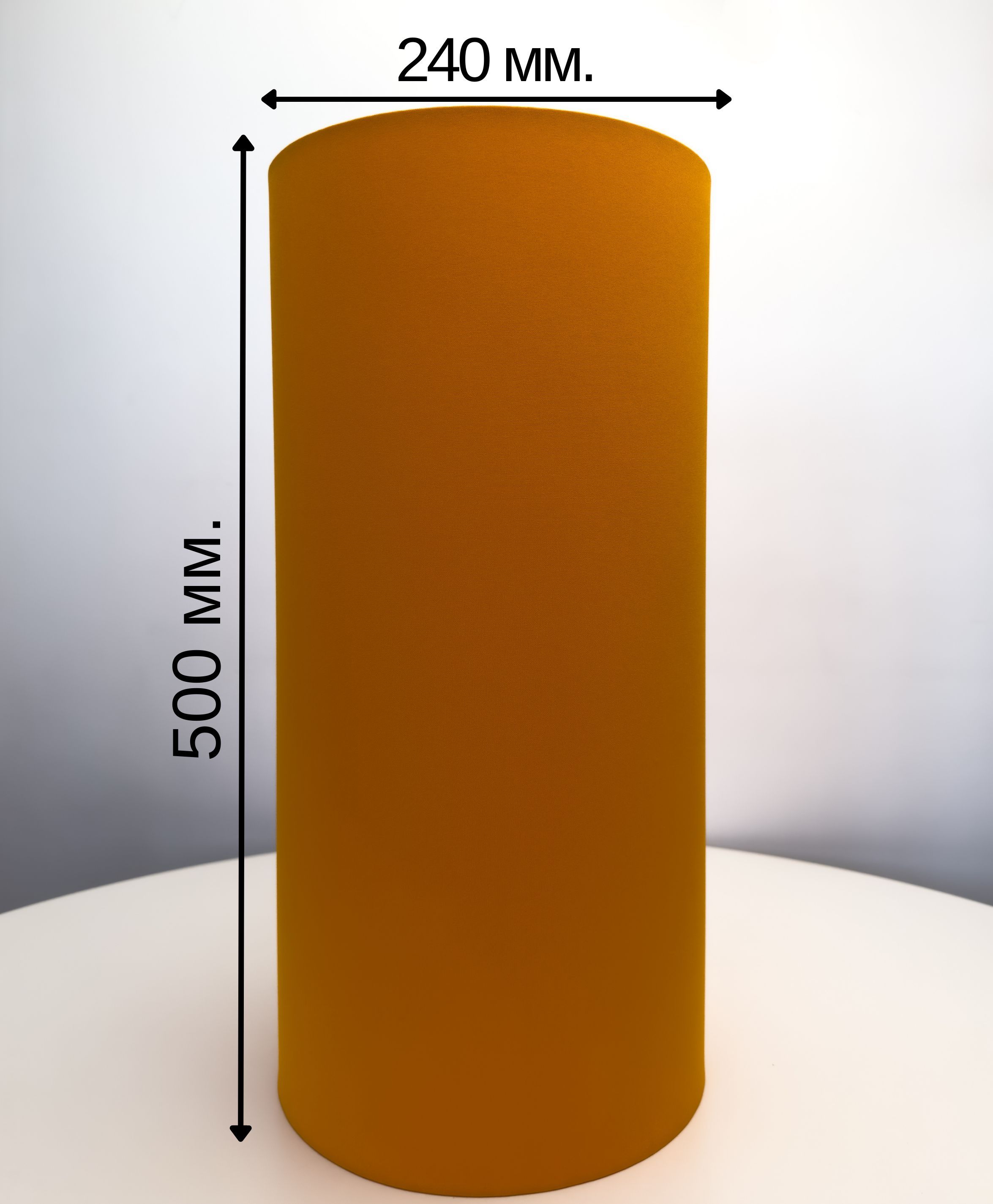 Классическая форма абажура – цилиндр. Цвет: Оранжевый. Размеры абажура: Верхний диаметр – 240 мм, Нижний диаметр 240 мм, высота – 500 мм. Крепление для патрона Е27. Абажур отлично сядет на большинство торшеров. Светильники и абажуры под брендом Пермский Свет – это всегда изделия самого высокого качества. Мы не экономим на качестве и не идем по пути дешевых материалов. Все изделия создаются на нашей фабрике полностью вручную. Для наших изделий, мы используем только качественные ткани и материалы. Цвет ткани и ее качество подобраны со вкусом нашими дизайнерами. Легкий, универсальный белый цвет абажура отлично впишется в любой интерьер. Прочные стальные каркасы покрыты надежной порошковой краской. Правильно подобранный абажур будет отлично смотреться на Вашем основании и радовать Вас.