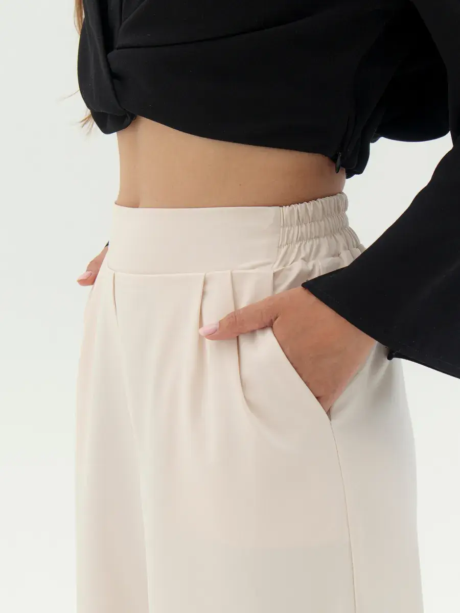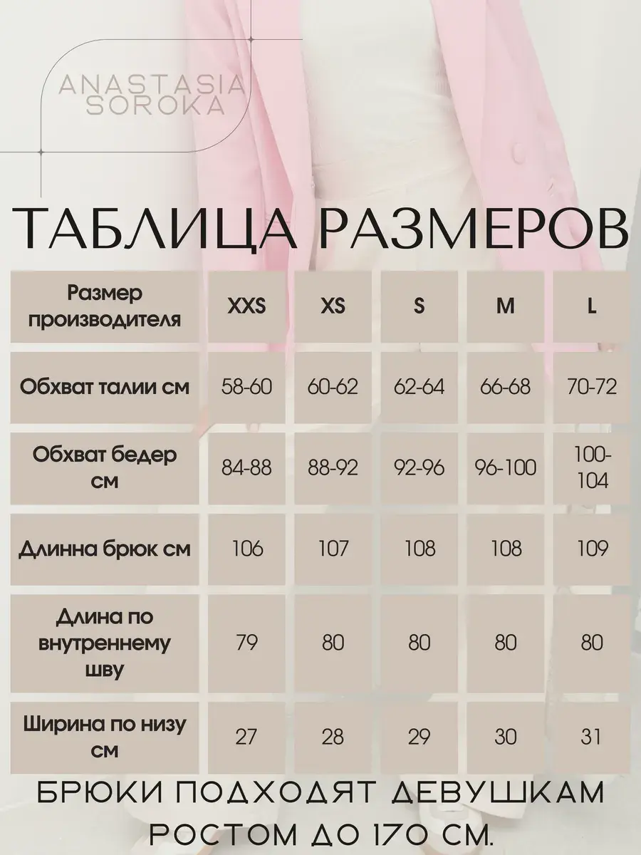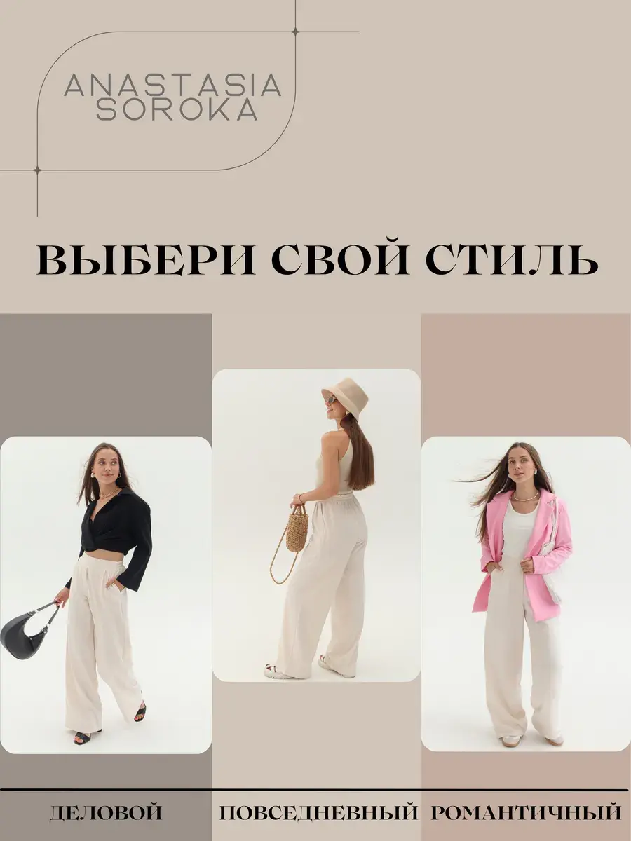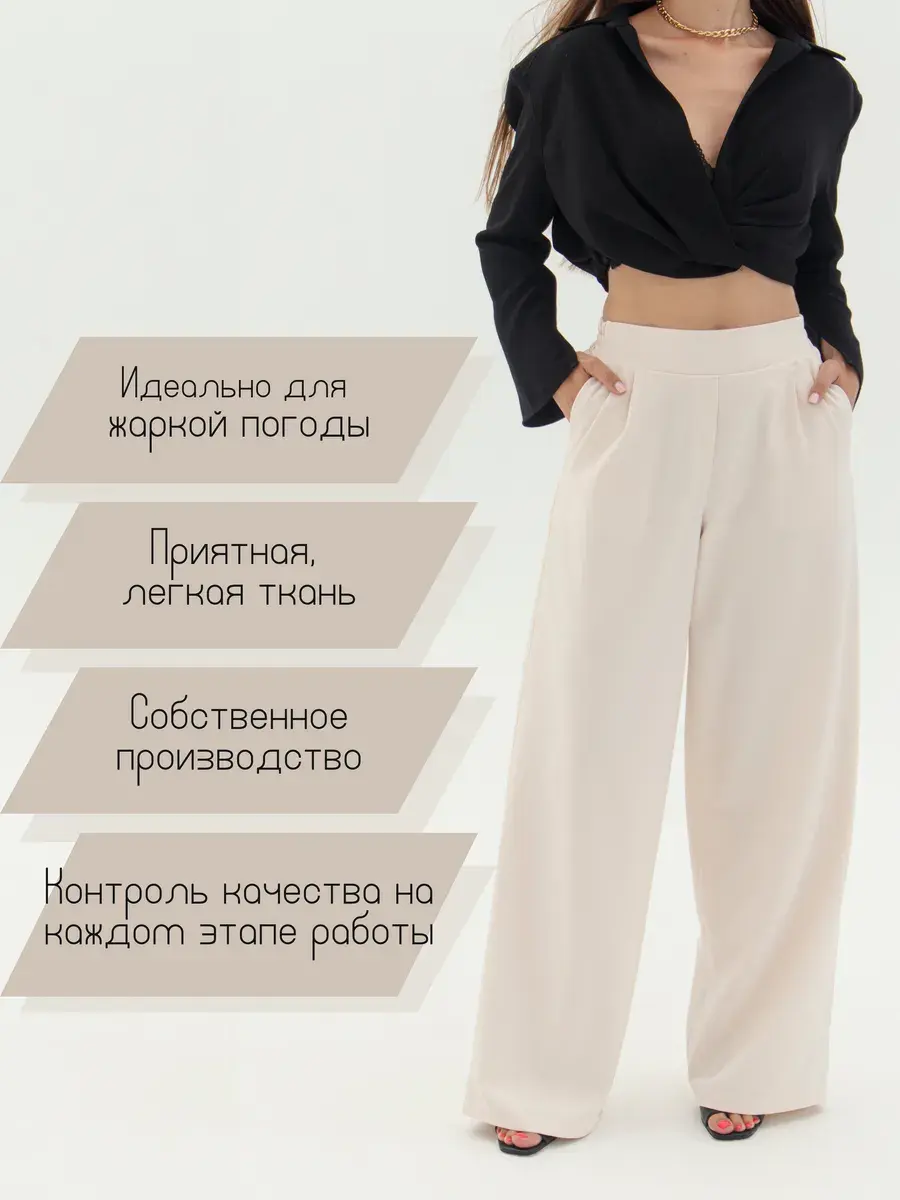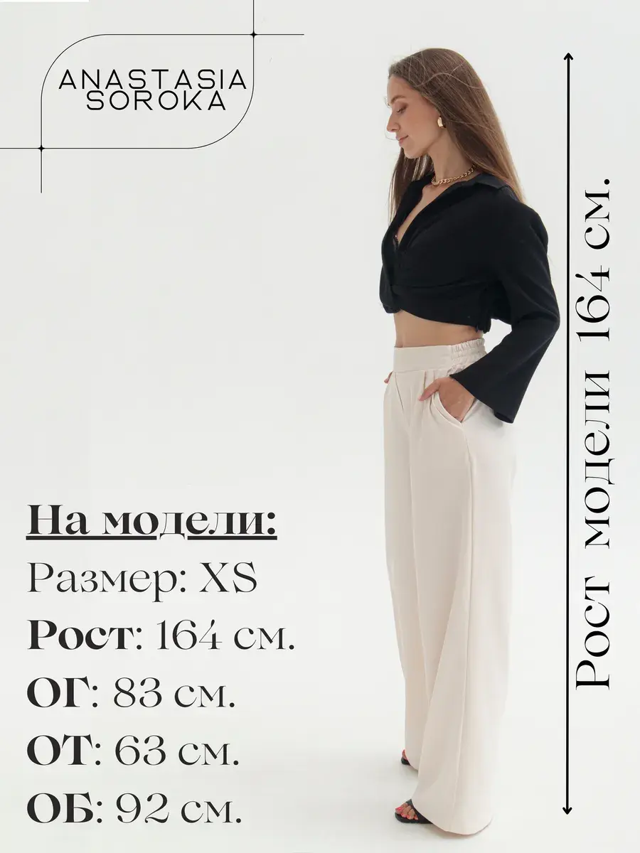 Стильные женские брюки палаццо бренда Anastasia Soroka - это идеальная одежда для офиса и вечерних выходов. Модель имеет эстетичную форму с широкими и прямыми штанинами, завышенной посадкой на талии и эластичной резинкой на поясе сзади. Наличие в коллекции разнообразных размеров делают брючки подходящими как взрослым женщинам, так и девушкам - подросткам любого роста и типа фигуры - высоким и невысоким, худым и с полными бедрами, а хороший выбор цветов позволяет подобрать вещь, идеально соответствующую вашим нуждам и вкусовым предпочтениям. Изделие выполнено из плотной и легкой ткани премиум - качества, в составе которой хлопок, полиэстер и эластан, что делает их оптимальными для ношения в теплое время года: весенний, летний и осенний сезоны. Красивый наряд поможет создать элегантный образ для вечеринки или фотосессии, а также трендовый и офисный лук и пройдет даже самый строгий дресс - код. Женственные штанишки со свободным кроем, прорезными боковыми карманами и защипами спереди станут самой модной и молодежной вещью в гардеробе каждой современной леди. Они сочетают в себе классику и тренды, подходят как на выпускной, так и на деловую встречу или просто для повседневного кэжуал - образа. Шикарные брюки актуальны как для нарядных и интересных луков, так и для неформальных образов. Вы сможете надеть их на танцы в клуб или семейный праздник, также они прекрасно подойдут для школьной формы.