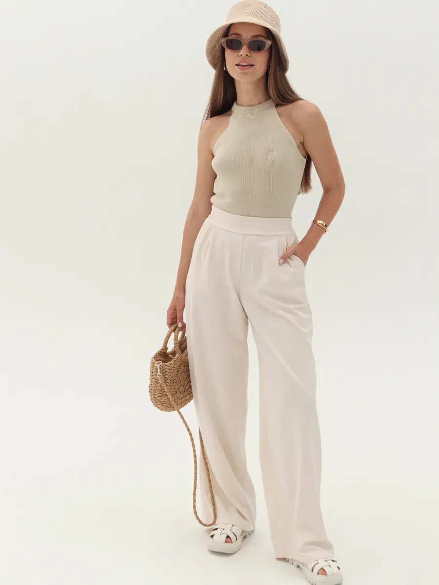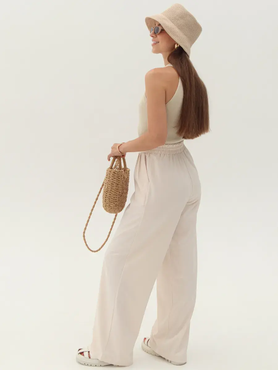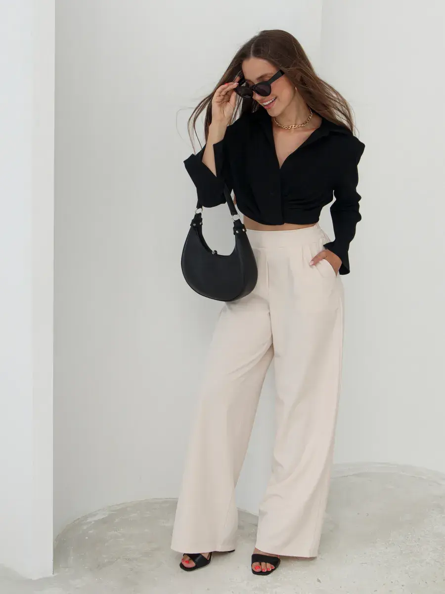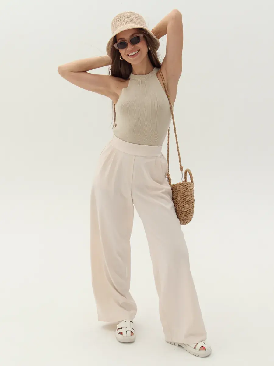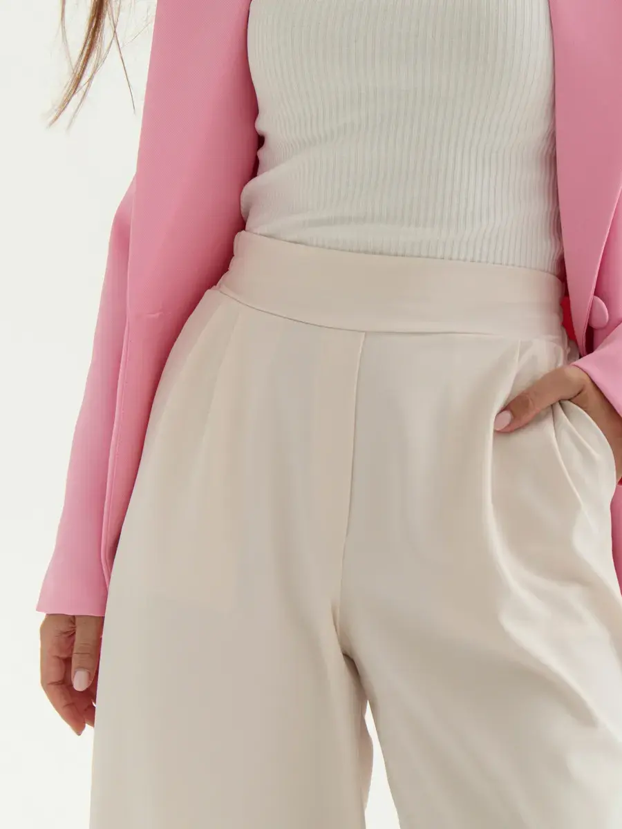 Стильные женские брюки палаццо бренда Anastasia Soroka - это идеальная одежда для офиса и вечерних выходов. Модель имеет эстетичную форму с широкими и прямыми штанинами, завышенной посадкой на талии и эластичной резинкой на поясе сзади. Наличие в коллекции разнообразных размеров делают брючки подходящими как взрослым женщинам, так и девушкам - подросткам любого роста и типа фигуры - высоким и невысоким, худым и с полными бедрами, а хороший выбор цветов позволяет подобрать вещь, идеально соответствующую вашим нуждам и вкусовым предпочтениям. Изделие выполнено из плотной и легкой ткани премиум - качества, в составе которой хлопок, полиэстер и эластан, что делает их оптимальными для ношения в теплое время года: весенний, летний и осенний сезоны. Красивый наряд поможет создать элегантный образ для вечеринки или фотосессии, а также трендовый и офисный лук и пройдет даже самый строгий дресс - код. Женственные штанишки со свободным кроем, прорезными боковыми карманами и защипами спереди станут самой модной и молодежной вещью в гардеробе каждой современной леди. Они сочетают в себе классику и тренды, подходят как на выпускной, так и на деловую встречу или просто для повседневного кэжуал - образа. Шикарные брюки актуальны как для нарядных и интересных луков, так и для неформальных образов. Вы сможете надеть их на танцы в клуб или семейный праздник, также они прекрасно подойдут для школьной формы.
