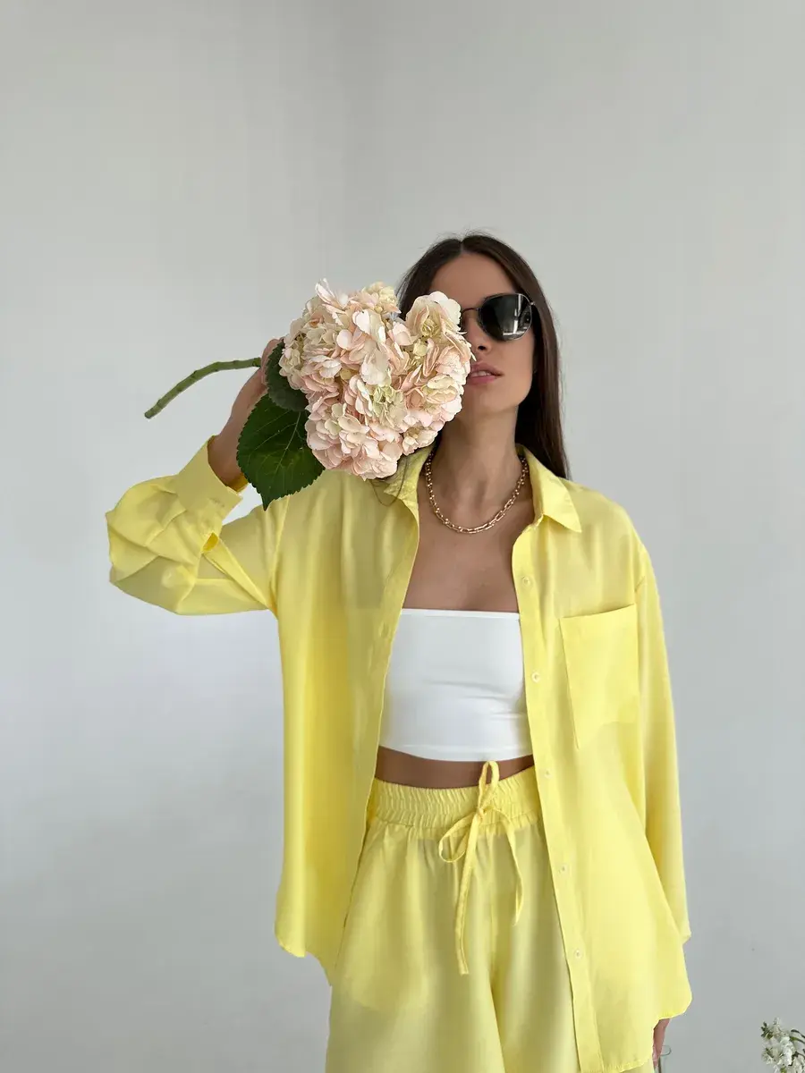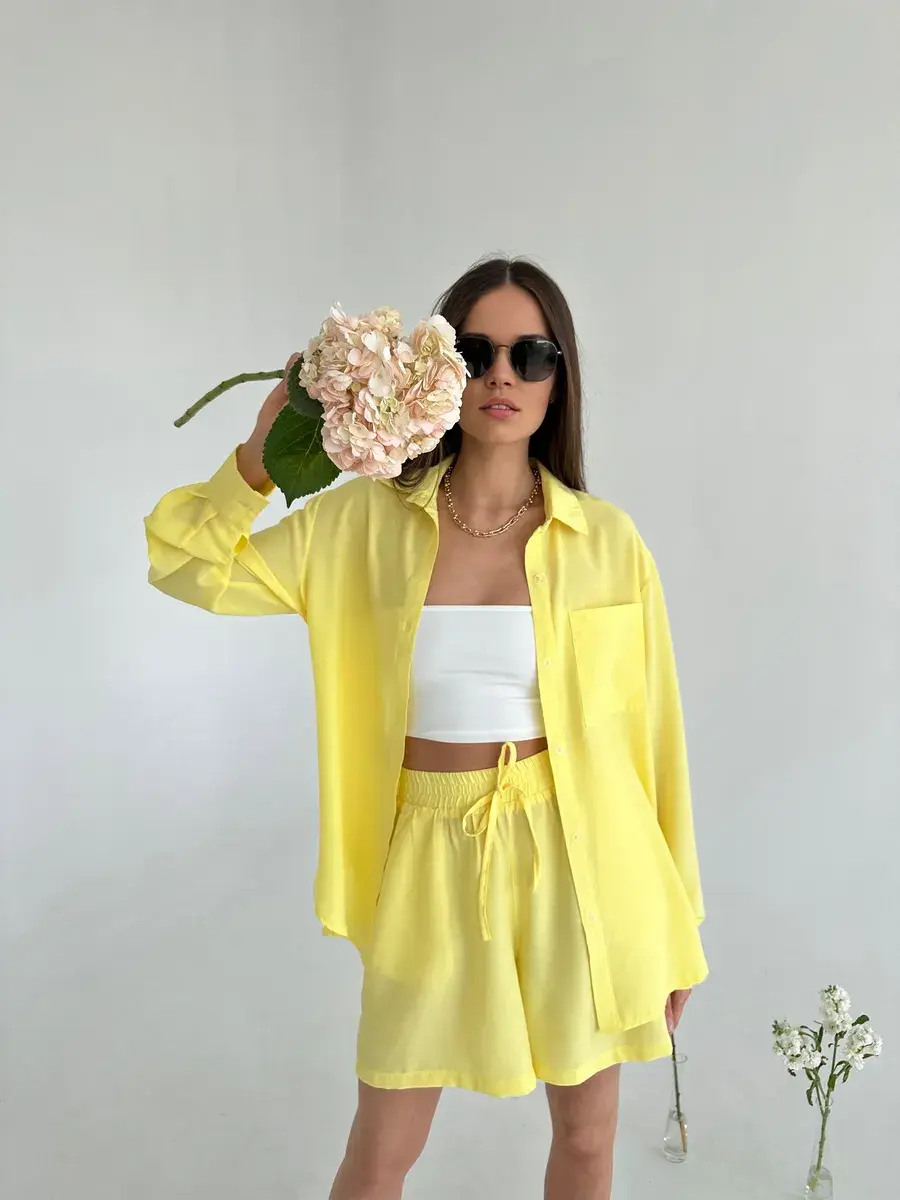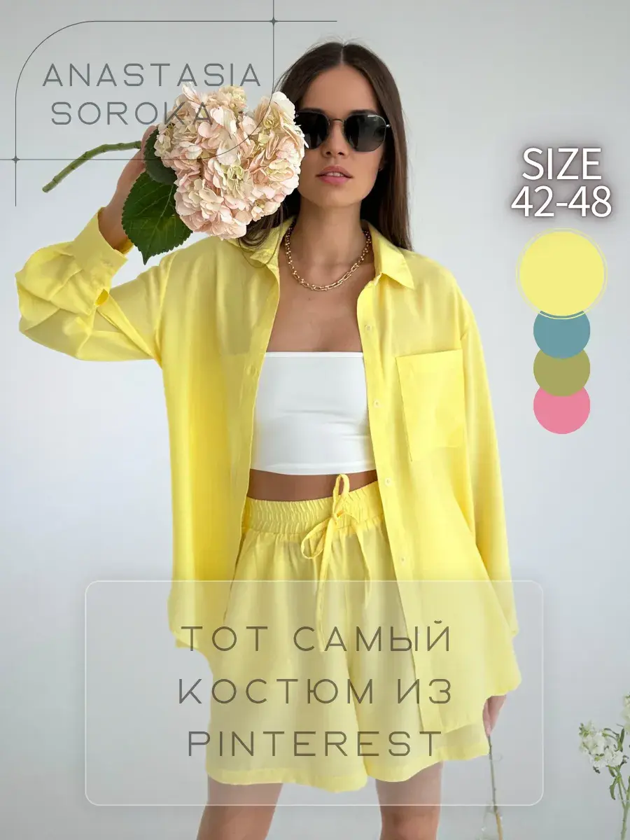 Летний костюм женский двойка Anastasia Soroka - это идеальный выбор для отдыха на пляже и повседневных выходов летом. Свободные шорты с завышенной посадкой на мягкой резинке и удлинённая рубашка оверсайз на пуговицах с длинными рукавами создают женственный и элегантный образ, отложным воротником и накладным карманом на груди. Изделия выполнены из мягкой, натуральной и приятной телу ткани премиум - качества, в составе которой вискоза. Благодаря высококачественным материалам пошива, не линяет, не деформируется и сохраняет форму после множество стирок. В нашей коллекции вы найдете хороший выбор цветов и размеров. Вы можете выбрать модель в спокойных оттенках: зеленом или оливковом. Если же вы предпочитаете яркие тона, то изделия желтого или розового цвета станут отличным выбором. Костюмчик подойдет как для дома, так и прогулок, а также будет отличным выбором для пляжной вечеринки, фотосессии или отдыха на природе, поездки на дачу или пикника. Это нарядный прогулочный вариант для стильных взрослых женщин и девушек - подростков, который позволит создать модный и женственный стиль! Данный костюм можно использовать как вечерний вариант, сочетая его с различными аксессуарами, вы сможете создать молодежный трендовый образ или подчеркнуть классический стиль. Это шикарная одежда для активного отдыха: туристических походов, поездок и путешествий. Оба предмета, входящих в комплект, имеют очень хорошее качество и свободную форму, которая не затрудняет движения. Однотонная двойка из блузки и шортиков отлично смотрится на девушках любого роста и типа фигуры - высоких и невысоких, худых и полных. Комплект будет отличным подарком на день рождения или годовщину. У нас есть акции и распродажи, вы можете купить наши товары в подарок или со скидкой!