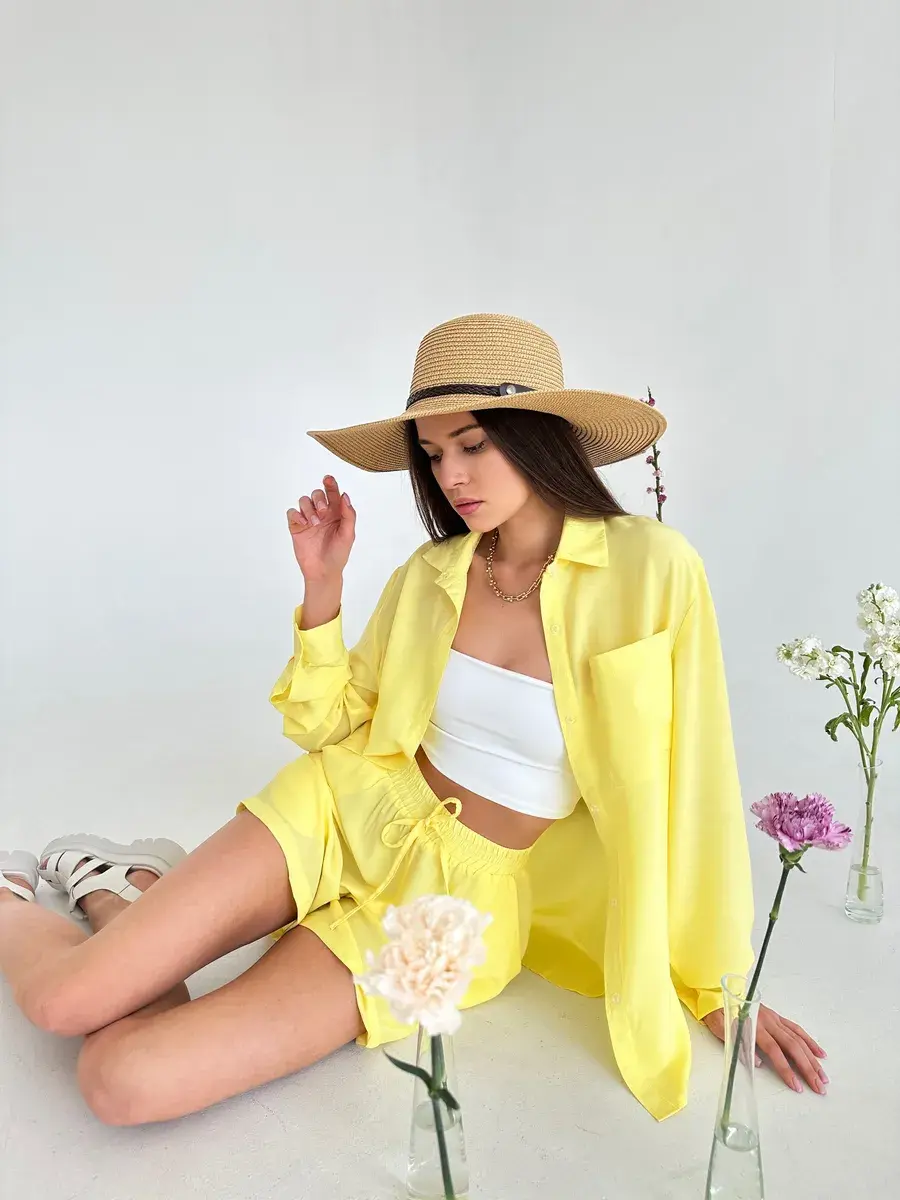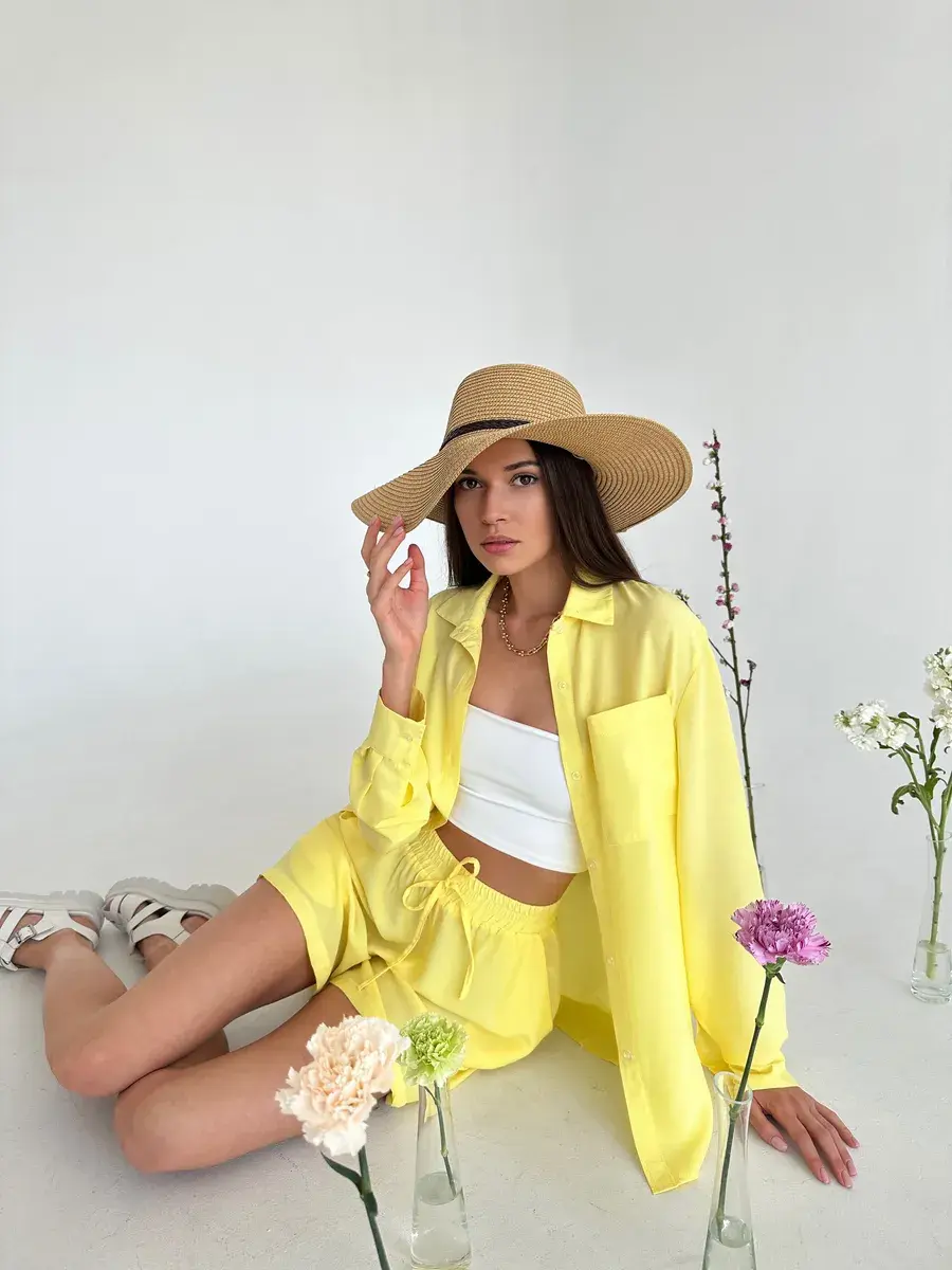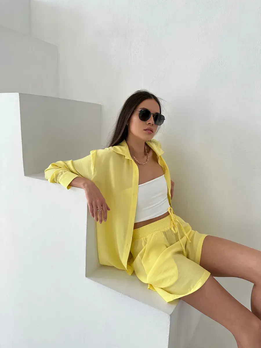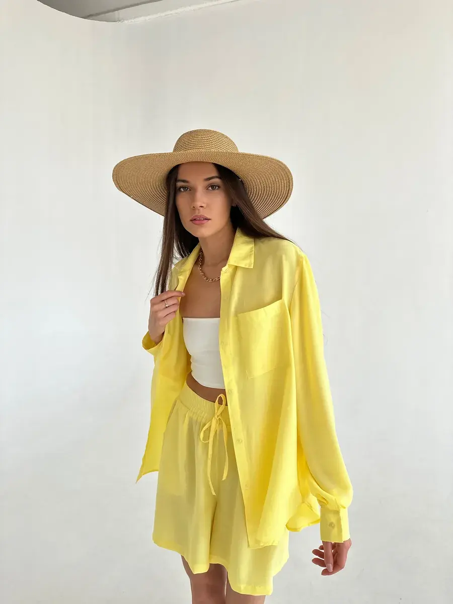 Летний костюм женский двойка Anastasia Soroka - это идеальный выбор для отдыха на пляже и повседневных выходов летом. Свободные шорты с завышенной посадкой на мягкой резинке и удлинённая рубашка оверсайз на пуговицах с длинными рукавами создают женственный и элегантный образ, отложным воротником и накладным карманом на груди. Изделия выполнены из мягкой, натуральной и приятной телу ткани премиум - качества, в составе которой вискоза. Благодаря высококачественным материалам пошива, не линяет, не деформируется и сохраняет форму после множество стирок. В нашей коллекции вы найдете хороший выбор цветов и размеров. Вы можете выбрать модель в спокойных оттенках: зеленом или оливковом. Если же вы предпочитаете яркие тона, то изделия желтого или розового цвета станут отличным выбором. Костюмчик подойдет как для дома, так и прогулок, а также будет отличным выбором для пляжной вечеринки, фотосессии или отдыха на природе, поездки на дачу или пикника. Это нарядный прогулочный вариант для стильных взрослых женщин и девушек - подростков, который позволит создать модный и женственный стиль! Данный костюм можно использовать как вечерний вариант, сочетая его с различными аксессуарами, вы сможете создать молодежный трендовый образ или подчеркнуть классический стиль. Это шикарная одежда для активного отдыха: туристических походов, поездок и путешествий. Оба предмета, входящих в комплект, имеют очень хорошее качество и свободную форму, которая не затрудняет движения. Однотонная двойка из блузки и шортиков отлично смотрится на девушках любого роста и типа фигуры - высоких и невысоких, худых и полных. Комплект будет отличным подарком на день рождения или годовщину. У нас есть акции и распродажи, вы можете купить наши товары в подарок или со скидкой!