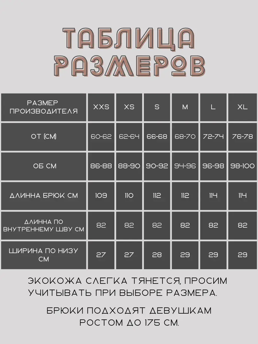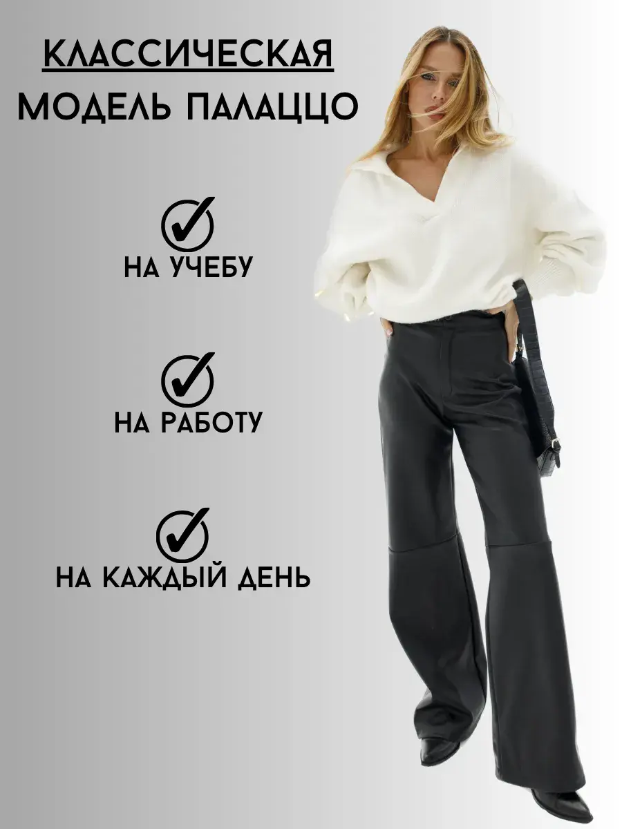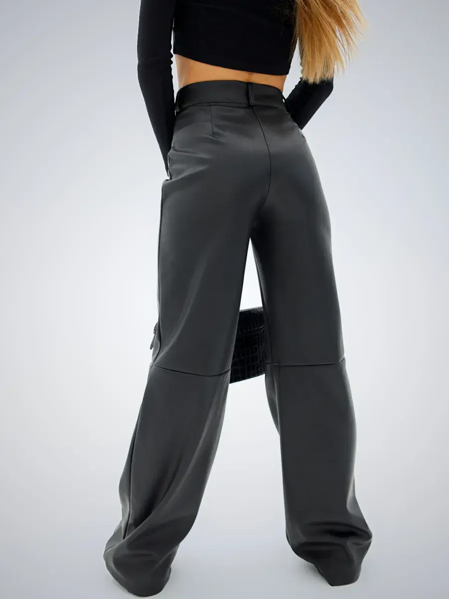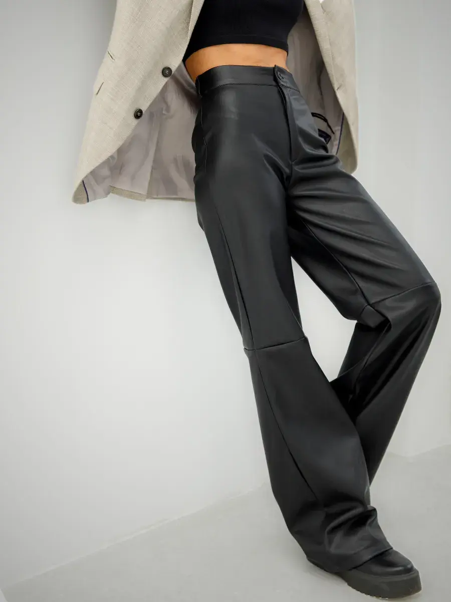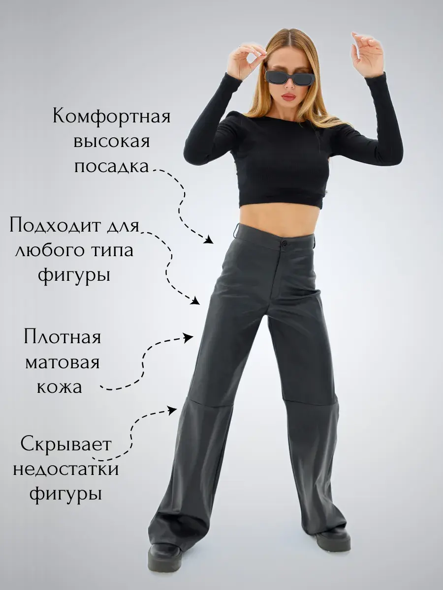 Они идеально дополнят любой гардероб и станут отличным вариантом для создания образа как рабочего дня, так и для особых случаев. Экокожа обеспечивает непревзойденную износостойкость и устойчивость к повреждениям, делая эти брюки долговечными и прочными.