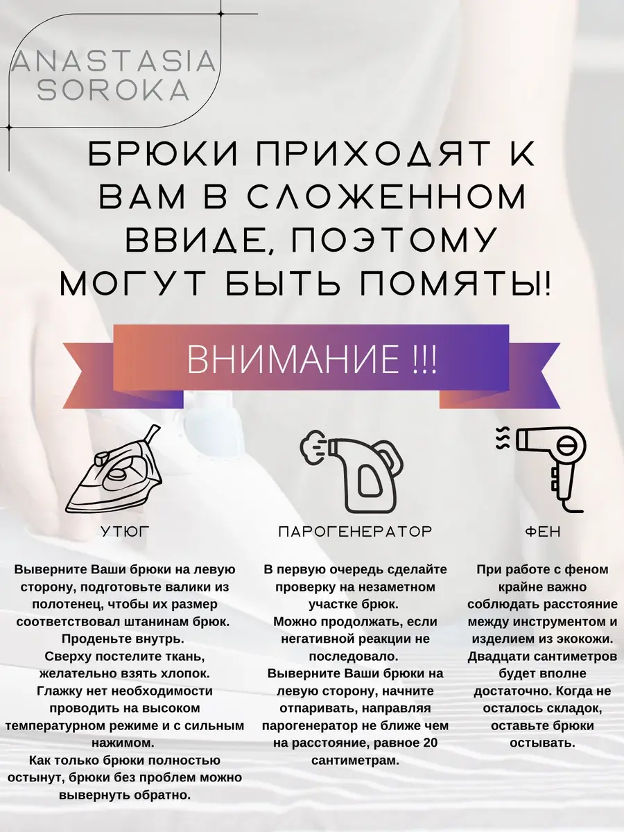 Уникальная особенность этих кожаных брюк женских - возможность укоротить их до нужной длины. Это позволяет подстраивать брюки под рост невысоких девушек, что делает их универсальными и подходящими для разных фигур.