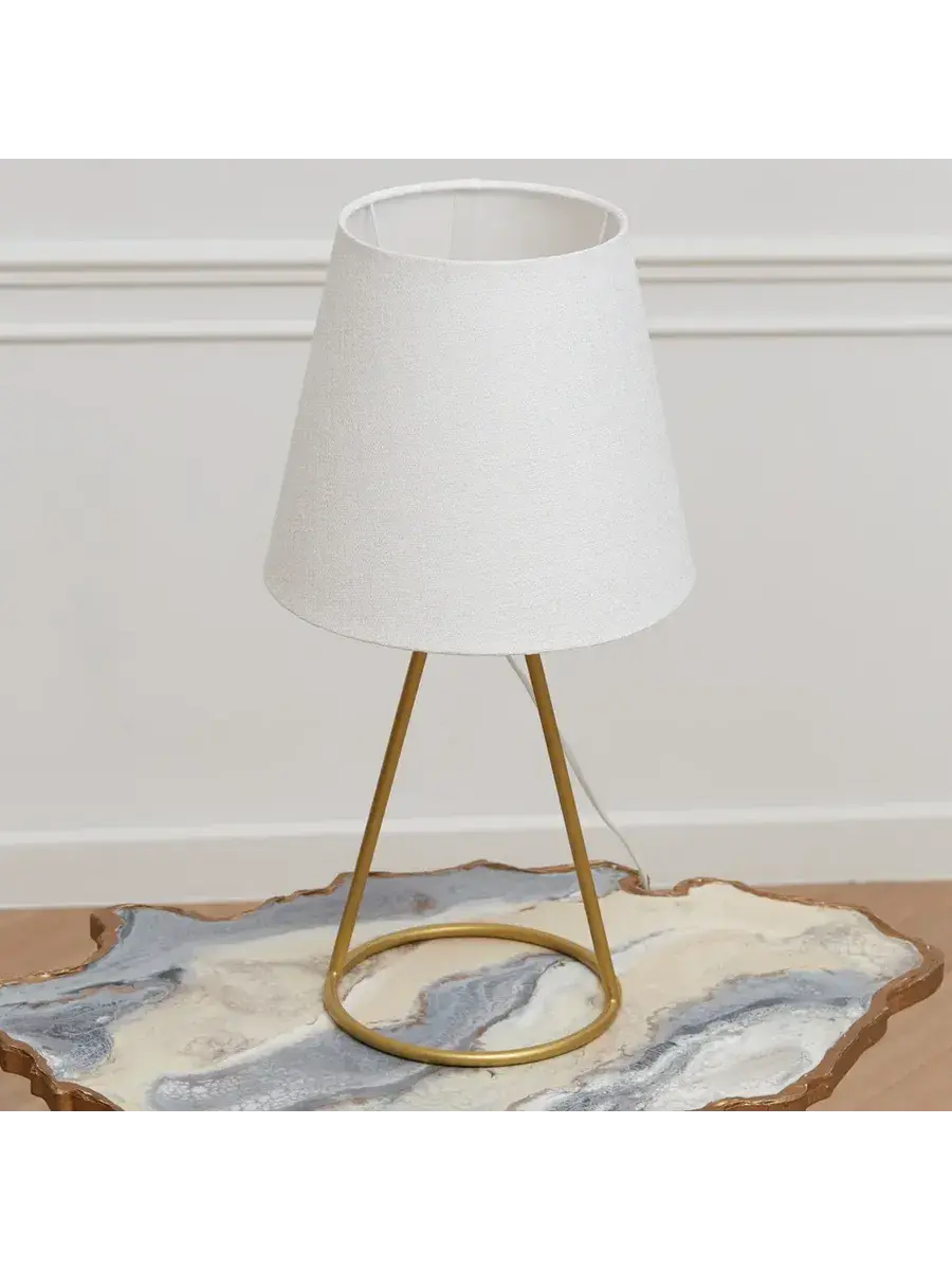 Золотистая ножка прекрасной лампы – это не что иное как символ стиля и элегантности, которые она приносит в ваш дом. Светлая ткань абажура погружает комнату в объятья мягкого света, рассеивая его по всем уголкам, словно заботливая материнская рука создала окутывающий объятья комплексный текстильный мир.