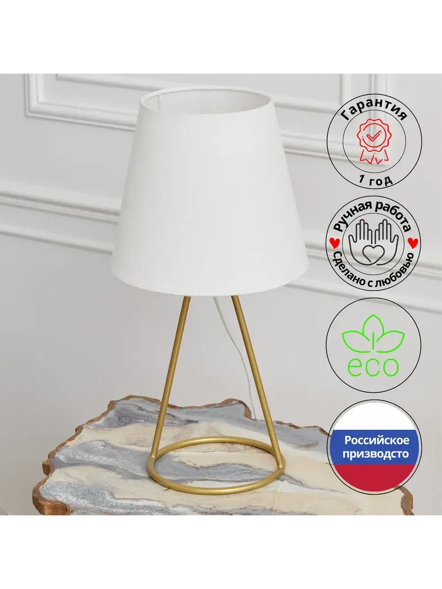 Такая лампа – это не только предмет интерьера; это частичка тепла для вашего домика. Она переливается оттенками золота и белого - цветов чистоты и элегантности. Включите ее выключателем со страстью художника-любителя заката: поток яркости проникнет в каждый уголок домашнего гнезда.