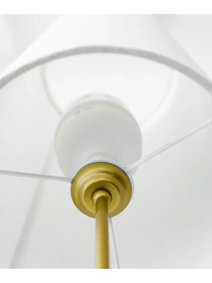 Золотистая ножка прекрасной лампы – это не что иное как символ стиля и элегантности, которые она приносит в ваш дом. Светлая ткань абажура погружает комнату в объятья мягкого света, рассеивая его по всем уголкам, словно заботливая материнская рука создала окутывающий объятья комплексный текстильный мир.