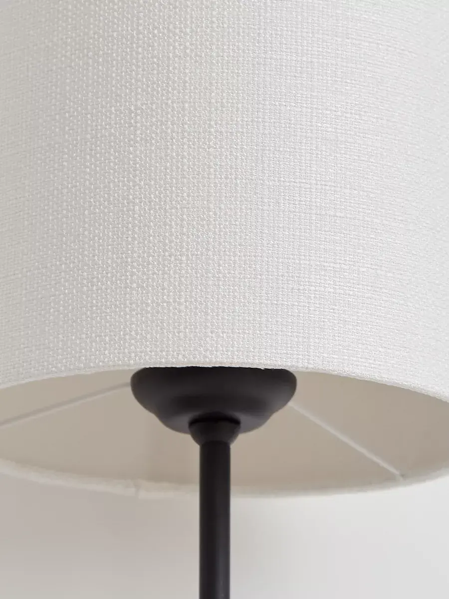 Черная ножка прекрасной лампы – это не что иное как символ стиля и элегантности, которые она приносит в ваш дом. Светлая ткань абажура погружает комнату в объятья мягкого света, рассеивая его по всем уголкам, словно заботливая материнская рука создала окутывающий объятья комплексный текстильный мир.