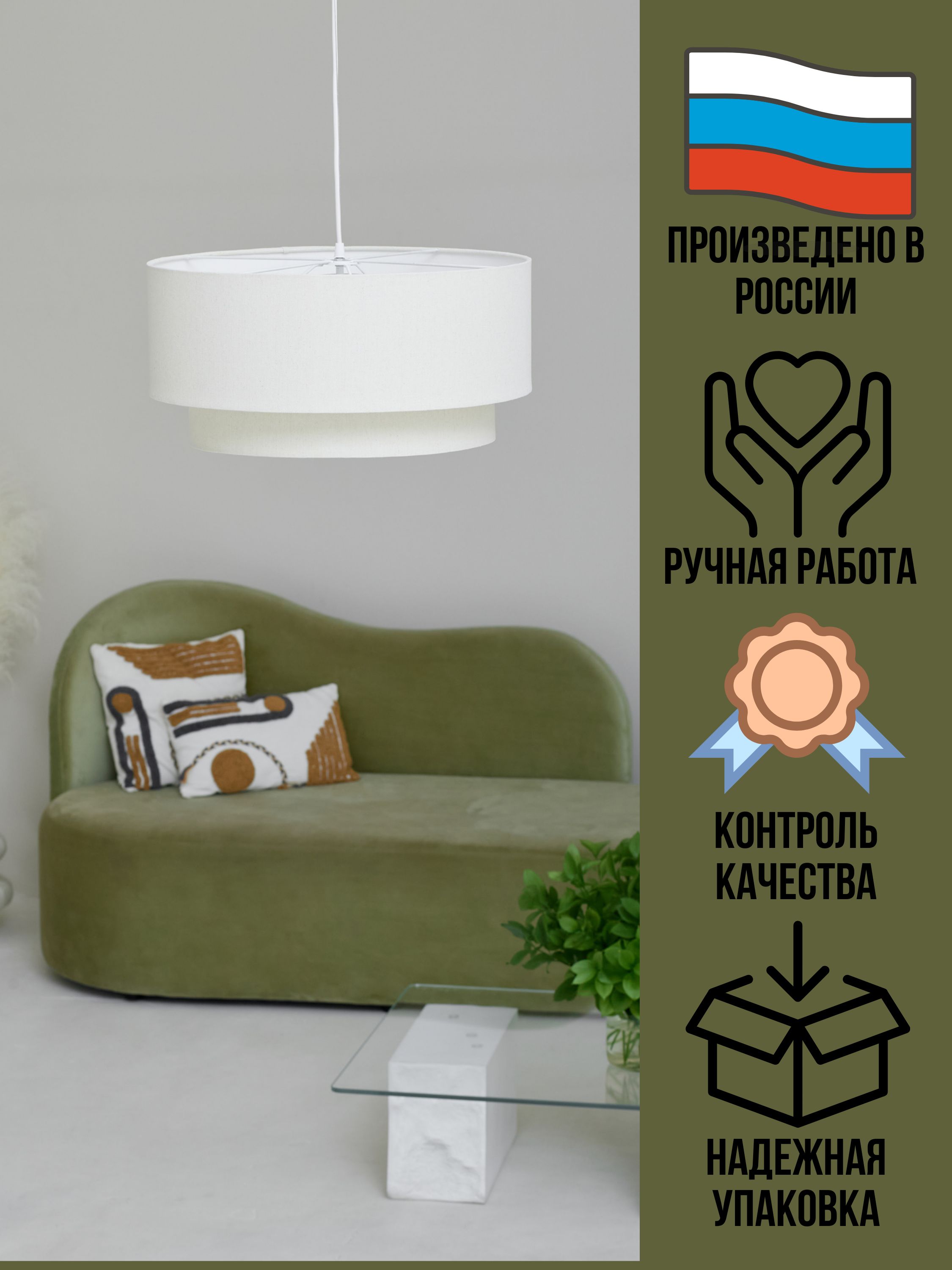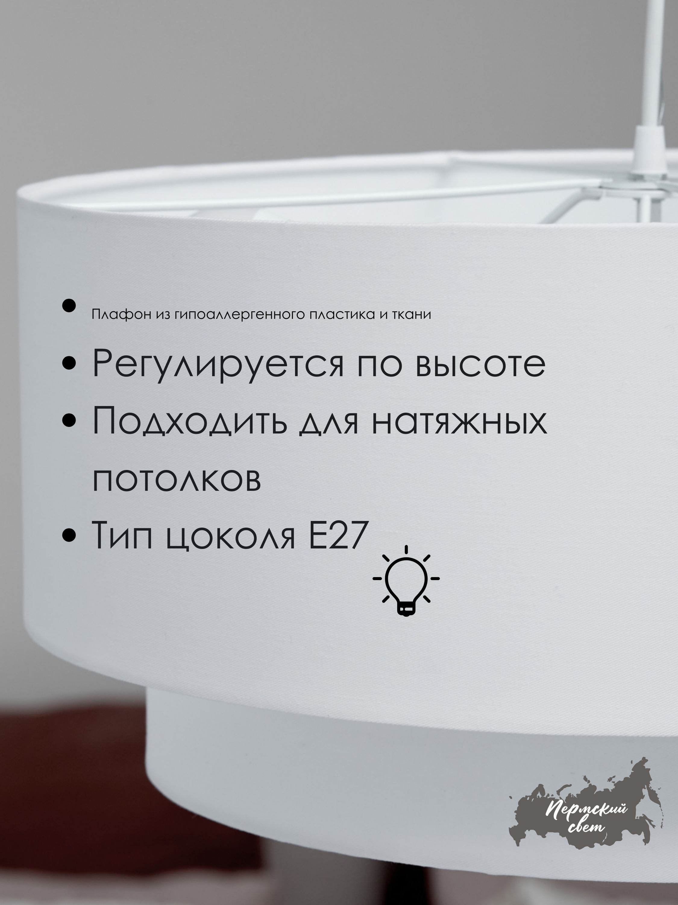 Абажур изготовлен из качественных материалов, придающих ему элегантный вид и долгий срок службы. Цоколь для лампочек Е27 выполнен таким образом, чтобы минимизировать риск перегрева и продлить жизнь самой лампе.