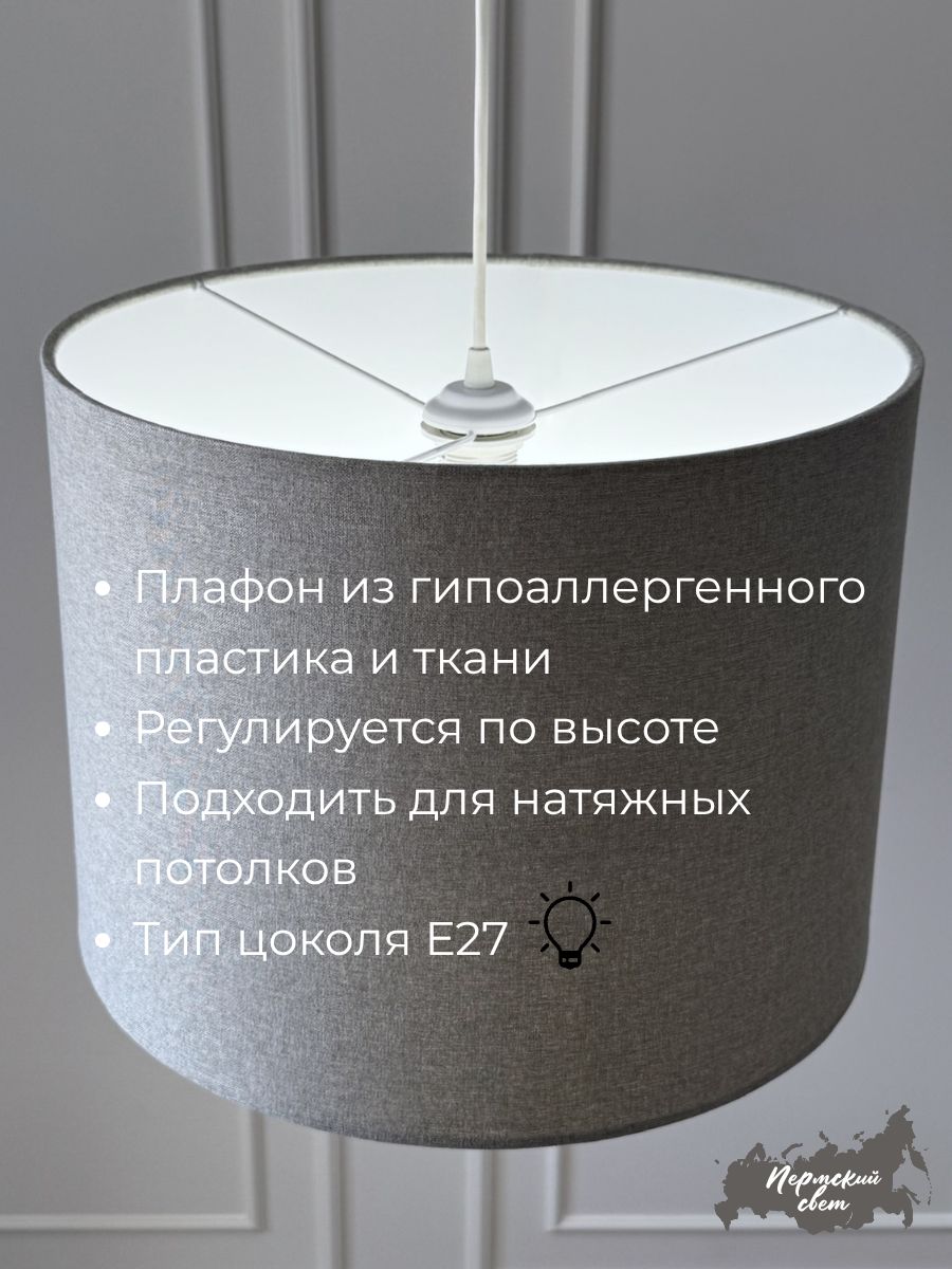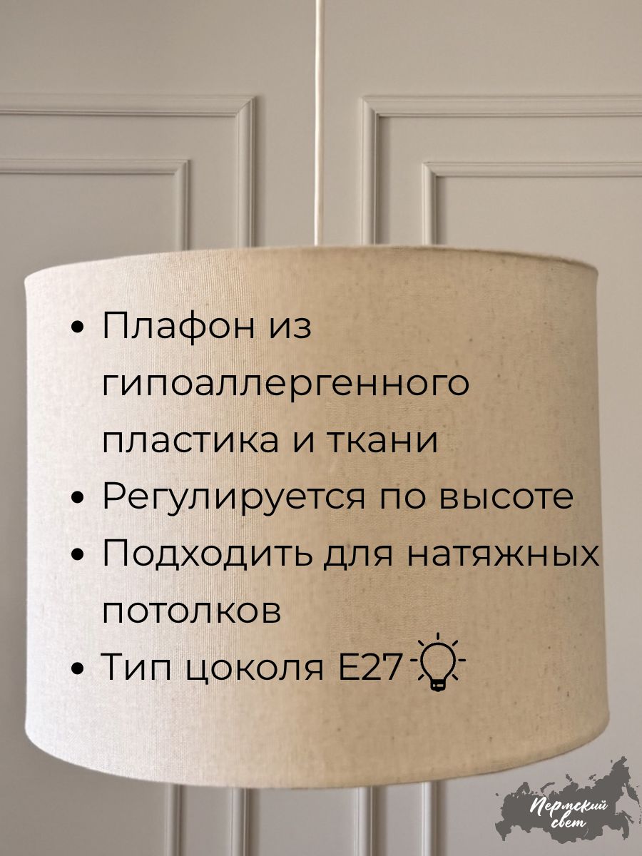 Абажур изготовлен из качественных материалов, придающих ему элегантный вид и долгий срок службы. Цоколь для лампочек Е27 выполнен таким образом, чтобы минимизировать риск перегрева и продлить жизнь самой лампе.