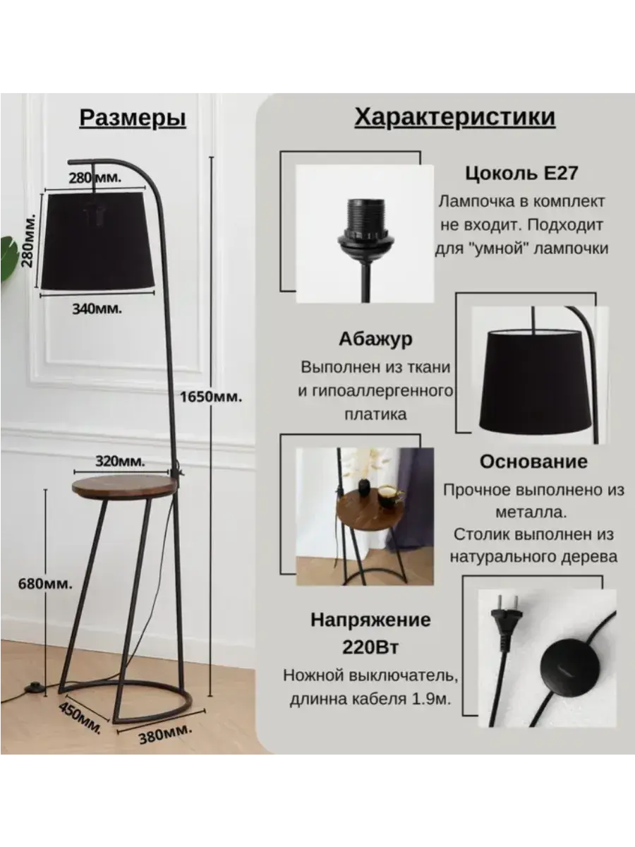 Стильный и современный торшер с лаконичным абажуром и высокой ножкой бренда Пермский свет идеально подойдет для вашей гостиной или спальни. Поможет создать уют, станет дополнительным источником освещения и просто красивым декоративным предметом в оформлении интерьера в вашем доме. Купите его как подарок для женщин и девушек на 8 Марта или украсьте свою комнату в стиле лофт или модерн с помощью этого красивого светильника. Изделие ручной работы выполнено на нашем собственном производстве - фабрике, осуществляющей строгий контроль качества на каждом этапе изготовления. Абажур торшера изготовлен из безопасных, экологически чистых и гипоаллергенных материалов: термостойкой светотехнической пленки российского производства и износостойкой ткани премиум-качества. Торшер имеет ножной выключатель на проводе с вилкой. Длина сетевого шнура 1,85 метра. Этот напольный светильник с классическим дизайном в черном цвете станет отличным декоративным элементом в вашем интерьере и подойдет и для мужской, и для женской комнаты. Его длинная изящная форма сделает его вашим любимым дополнением для домашнего оформления декора. Он оснащен простым и удобным управлением освещения с помощью переключателя с кнопкой, а его черный абажур из качественной ткани поможет создать уютную домашнюю атмосферу. Уникальная торшерная лампа с дизайнерским абажуром идеально подойдет для оформления интерьера в комнате в стиле минимализм или модерн. Ее основание из пластика и металла идеально сочетается с текстильным абажуром. Она выступает отличным дополнительным источником освещения во время чтения книг или занятия рукоделием. Это идеальный выбор для рабочего кабинета или детской комнаты в квартире. Установите ее у камина, дивана или кресла. Комнатное изделие также подходит для интерьерного оформления дачи. Изделие удобное и практичное для использования. Проводной светильник работает от сети питания и подключается в обычную розетку. Для него подойдут любые светодиодные лампочки с цоколем Е27 (приобретаются отдельно). Изделие станет отличным подарком вашим родным и друзьям: родителям - маме с папой или дедушке с бабушкой. У нас есть акции и распродажи, вы можете купить наши товары в подарок или со скидкой!