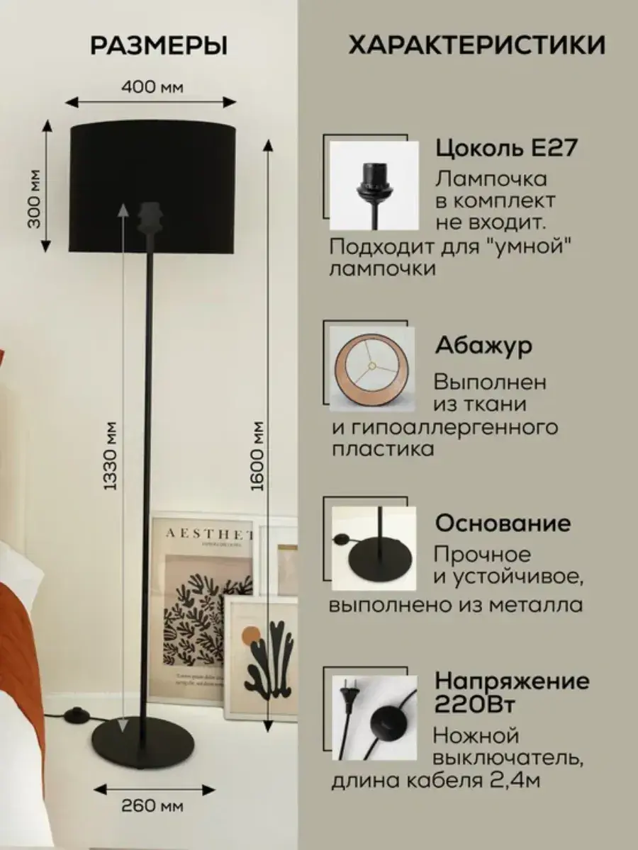 Стильный и современный торшер с лаконичным абажуром и высокой ножкой бренда Пермский свет идеально подойдет для вашей гостиной или спальни. Поможет создать уют, станет дополнительным источником освещения и просто красивым декоративным предметом в оформлении интерьера в вашем доме. Купите его как подарок для женщин и девушек на 8 Марта или украсьте свою комнату в стиле лофт или модерн с помощью этого красивого светильника. Изделие ручной работы выполнено на нашем собственном производстве - фабрике, осуществляющей строгий контроль качества на каждом этапе изготовления. Абажур торшера изготовлен из безопасных, экологически чистых и гипоаллергенных материалов: термостойкой светотехнической пленки российского производства и износостойкой ткани премиум-качества. Торшер имеет ножной выключатель на проводе с вилкой. Длина сетевого шнура 2,4 метра. Этот напольный светильник с классическим дизайном в черном цвете станет отличным декоративным элементом в вашем интерьере и подойдет и для мужской, и для женской комнаты. Его длинная изящная форма сделает его вашим любимым дополнением для домашнего оформления декора. Он оснащен простым и удобным управлением освещения с помощью переключателя с кнопкой, а его золото-черный абажур из качественной ткани поможет создать уютную домашнюю атмосферу. Уникальная торшерная лампа с дизайнерским абажуром идеально подойдет для оформления интерьера в комнате в стиле минимализм или модерн. Ее основание из пластика и металла идеально сочетается с текстильным абажуром. Она выступает отличным дополнительным источником освещения во время чтения книг или занятия рукоделием. Это идеальный выбор для рабочего кабинета или детской комнаты в квартире. Установите ее у камина, дивана или кресла. Комнатное изделие также подходит для интерьерного оформления дачи. Изделие удобное и практичное для использования. Проводной светильник работает от сети питания и подключается в обычную розетку. Для него подойдут любые светодиодные лампочки с цоколем Е27 (приобретаются отдельно). Изделие станет отличным подарком вашим родным и друзьям: родителям - маме с папой или дедушке с бабушкой. У нас есть акции и распродажи, вы можете купить наши товары в подарок или со скидкой!